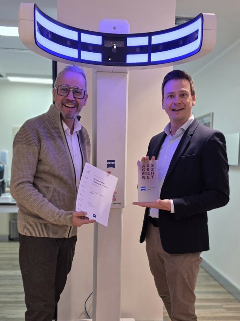 Besonders erfreut sind wir darüber, dass wir bei der Testphase einiger Brillengläser von Anfang an mit an Bord waren. Durch den regelmäßigen Austausch mit hochrangigen Vertretern wie Markus Brückel, Leiter der ZEISS Academy, Christian Mutzel, Leitung Vertrieb Süd bei ZEISS Vision Care, sowie Herrn Dr. Christian Lappe, Director Scientific Affairs & Technical Communication Principal – ZEISS Expert Ladder, zeigen sich die Früchte einer erfolgreichen Zusammenarbeit.